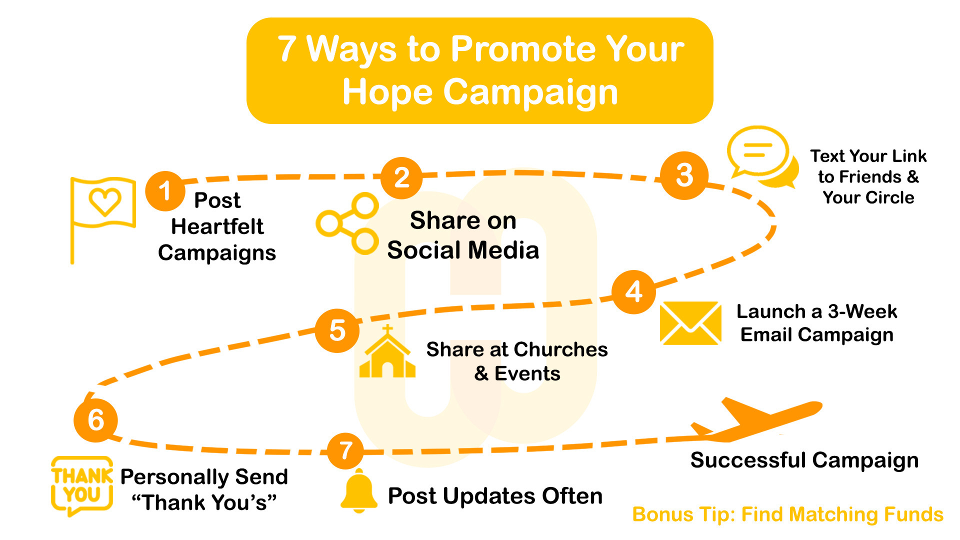 Videos 7 Ways to Promote Your Campaign DOWNLOAD - 7 Ways to Promote PDF HopeGives Matching Fund How to onboard as a missionary